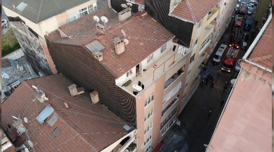 Öte yandan çökme tehlikesi nedeniyle boşaltılan apartman havadan görüntülendi.İHA