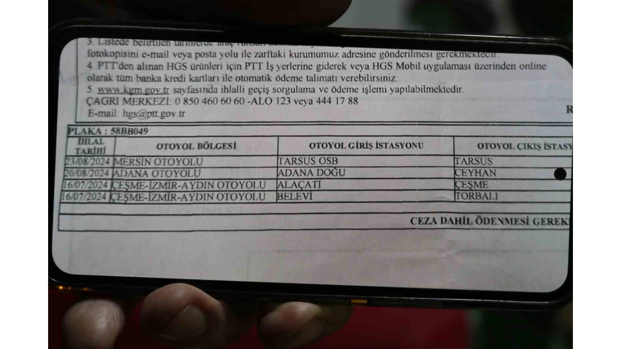 Yiğit, başına gelen hatanın yüksek meblağlardan ödeme imkanı bulunmayan kişilerinde başına gelebileceğini ifade ederekp, "Bana gelen tebligatta ücretli otoyola girdiğim ama ücret ödemediğim belirtiliyor. Ben Sivas'ta ikamet etmeme rağmen İzmir, Alaçatı, Çeşme, Adana ve Pozantı ücretli geçişlerinden ücret ödemeden geçtiğim için ceza belgesi geldi. Mecburen ödemeyi yaptım, şimdide itirazımı yapacağım. 2024 yılının 7. ve 8. aylarında bu geçişlerin yapıldığı belirtilmiş. Bu tarihlerde ben Sivas'taydım. Hayretler içerisindeyim. Bu nasıl oluyor bilemiyorum. Küçük bir miktar geldi ama büyük bir miktarda gelebilirdi. Bu hatalar ödeyemeyecek gücü olanları mağdur edebilir" dedi.