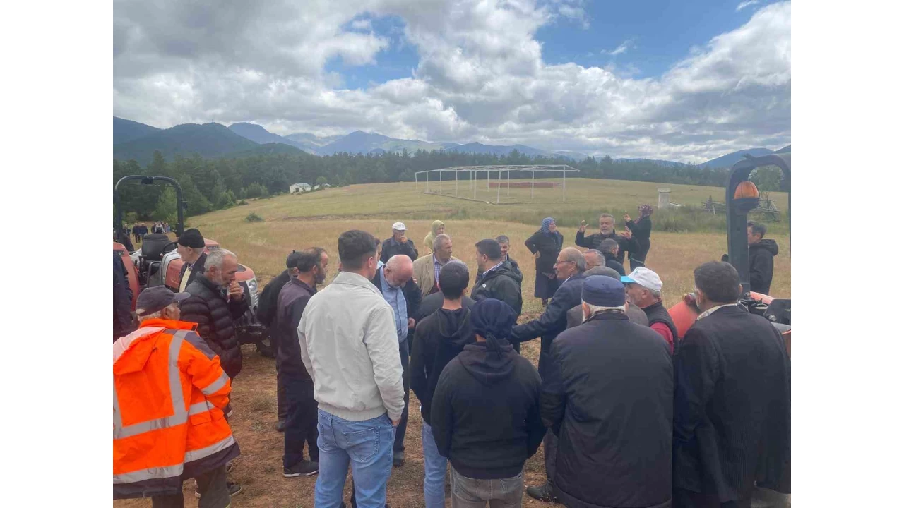 İş makinalarının araziye yöneldiğini gören bir grup köy sakini ise engel olmak istedi. Kalabalık iş makinalarının önüne geçerek sondaj çalışmasına engel oldu.