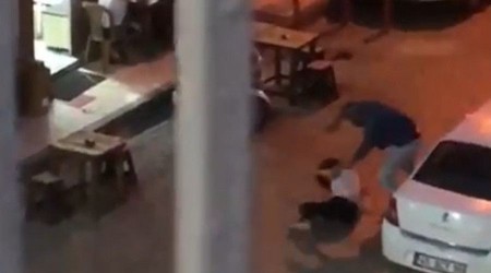 Öte yandan balkondaki bir vatandaşın cep telefonuyla saniye saniye kaydettiği görüntülerde O.Ö.'nün, A.E.'yi tekme tokat dövdüğü sırada bazı vatandaşlar hiçbir şey olmamış gibi yürüyüp geçerken, bir iş yerinin önünde oturan iki kişinin de duyarsızca olaya sırtlarını dönmesi dikkat çekti.