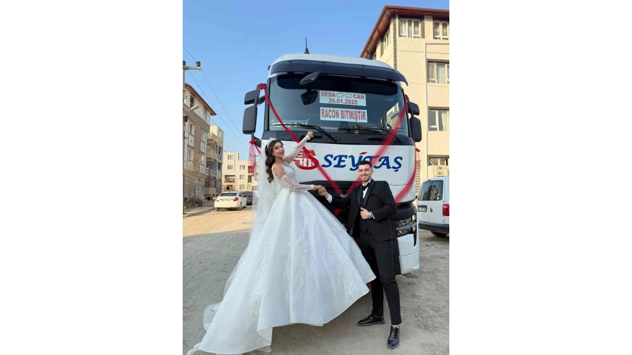 Hatay'da yaşayan tır şoförü Mehmet Can Kör, kullandığı tırı düğününde gelin arabası yaptı. Renkli görüntülerin oluştuğu düğünün ardından 2 yıllık tır şoförü damat, mesleğini bırakarak eşiyle birlikte esnaflık yapmaya başladı.