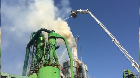 Ayrıca, fabrikanın bacalarını saran alevleri söndürmek için ekipler, itfaiye aracının merdiveniyle 32 metre yüksekliğe çıkarak tazyikli su ile müdahale etti. Bu esnada itfaiye ekipleri yangını kontrol altında tutarken, soğutma çalışmalarına beton mikserleri de katıldı. Mikserlere su yükleyen görevliler, baca ve borulara su dökerek yardımda bulundu.
