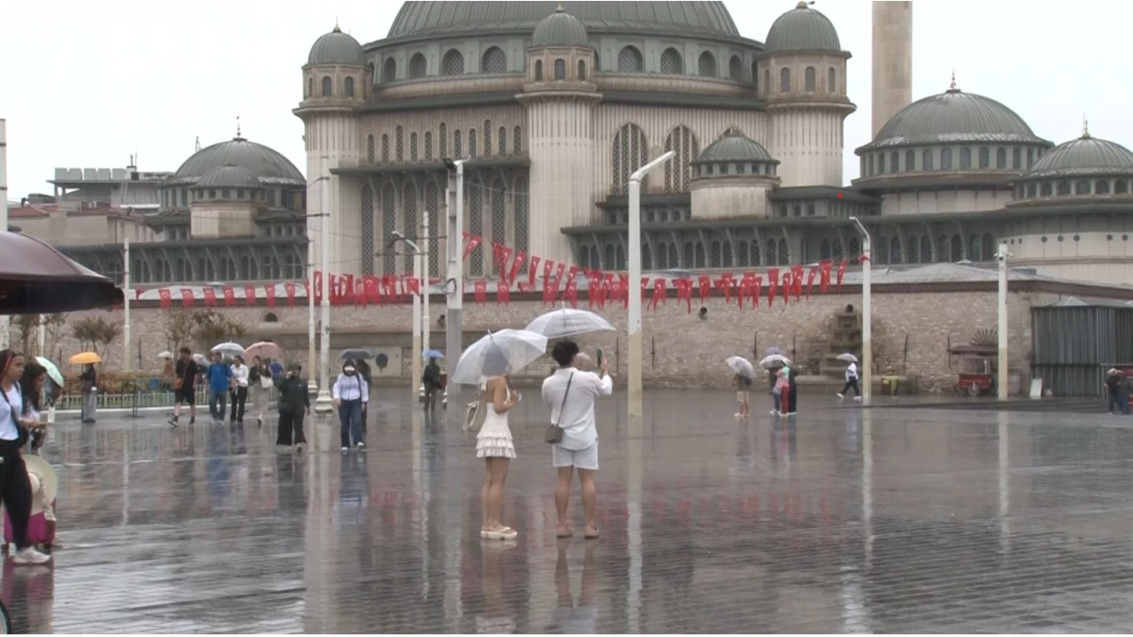 Meteoroloji Genel Müdürlüğü'nün uyarılarının ardından İstanbul'da sabah saatlerinden itibaren sağanak yağış başladı. Taksim'de kısa süreli etkili olan sağanak yağışa turistler ve vatandaşlar hazırlıksız yakalandı.