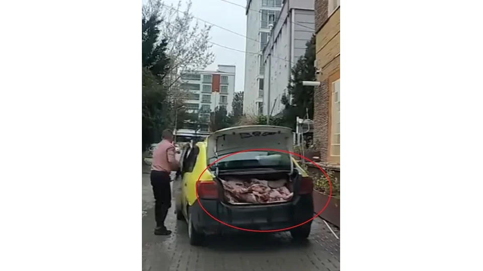 Samsun'un Atakum ilçesinde bir taksinin bagajında uygunsuz şartlarda et taşındığı anlar cep telefonu kamerasına yansıdı. Görüntülerin sosyal medyada yayılması üzerine harekete geçen ekipler, işletmeye ceza uyguladı