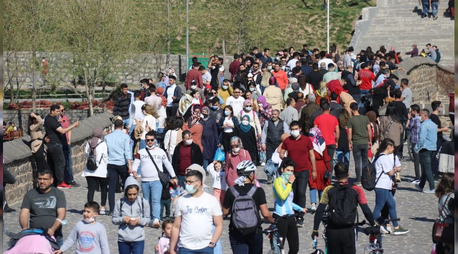 Türkiye'de korona virüs vakaları 50 bini aşarken, Diyarbakır'da, hafta sonunda korkutan görüntü oluştu. Güneşli havayı fırsat bilen vatandaşlar, sosyal mesafeyi unutarak tarihi On Gözlü Köprüsünde halay çekti