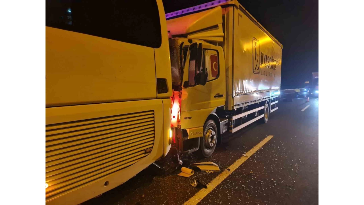 Orta şeritte durmak zorunda kalan otobüse, aynı yönde ilerleyen Kadri E. yönetimindeki 34 MNZ 215 plakalı kamyon arkadan çarptı. Meydana gelen kazada yedek şoför yaralandı.