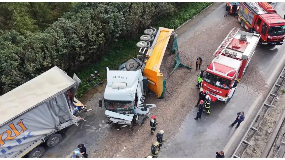TEM'de tır devrildi facia yaşandı!