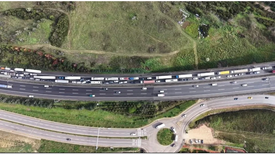 Kaza nedeniyle TEM Otoyolu'nun Ankara istikameti bir süre ulaşıma kapanırken, bölgede kilometrelerce araç kuyruğu oluştu.