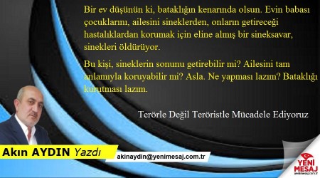 Bir ev düşünün ki, bataklığın kenarında olsun. Evin babası çocuklarını, ailesini sineklerden, onların getireceği hastalıklardan korumak için eline almış bir sineksavar, sinekleri öldürüyor.
