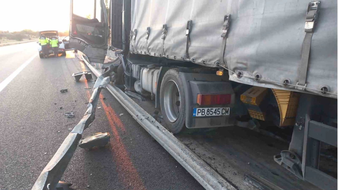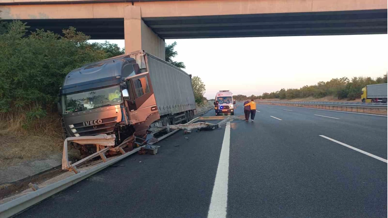 Edirne-İstanbul TEM Otoyolu'nun 62'nci kilometresinde meydana gelen kazada, Bulgaristan plakalı bir tır bariyerlere çarptı.