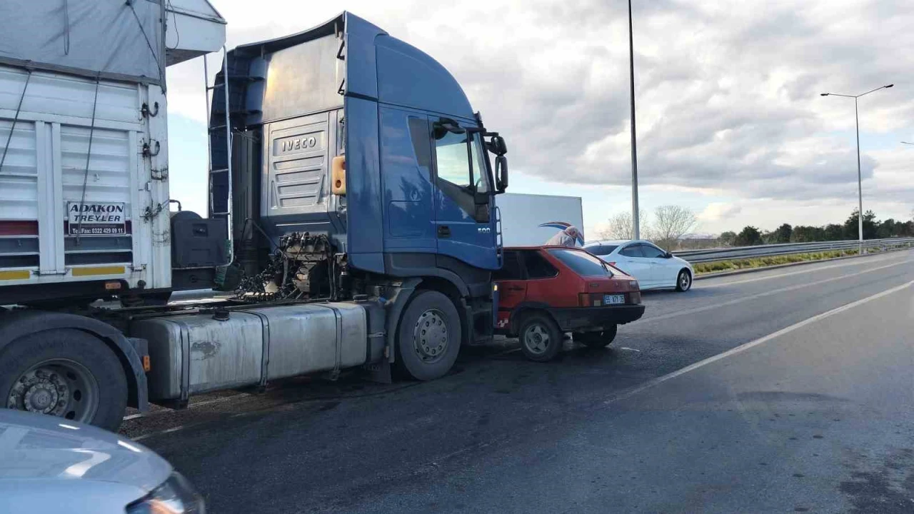 Edinilen bilgiye göre, Sinop istikametine seyir halinde olan 55 NE 898 plakalı tır, aynı yönde ilerleyen 55 ATY 35 plakalı otomobile arkadan çarptı.