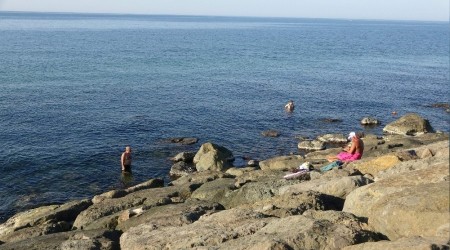 Trabzon'un Faroz Balıkçı Barınakları arkasında denize giren bazı vatandaşlar suyun hala sıcaklığını koruduğunu belirterek denizin Antalya'da denizin bu kadar güzel olmadığını savundu.
