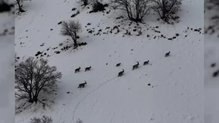 Tunceli’de nesilleri tehdit altında olduğu için koruma altında bulunan yaban keçileri havadan görüntülendi.