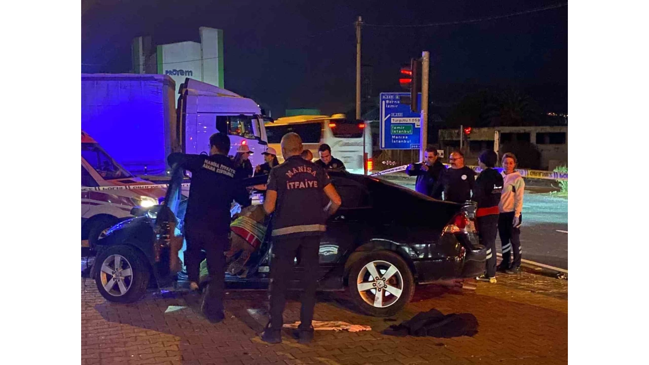 Manisa'nın Turgutlu ilçesinde tır ile otomobilin çarpıştığı kazada 1 kişi yaşamını yitirdi, 3 kişi ise yaralandı