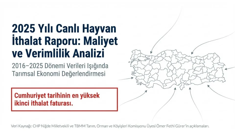 Türkiye'nin 2016–2025 dönemindeki canlı sığır ithalat verilerini değerlendiren CHP Niğde Milletvekili Ömer Fethi Gürer, 2025 yılının 1 milyar 191 milyon dolarlık fatura ile Türkiye tarihinin tutar bazında en büyük ikinci ithalat yılı olduğunu söyledi.