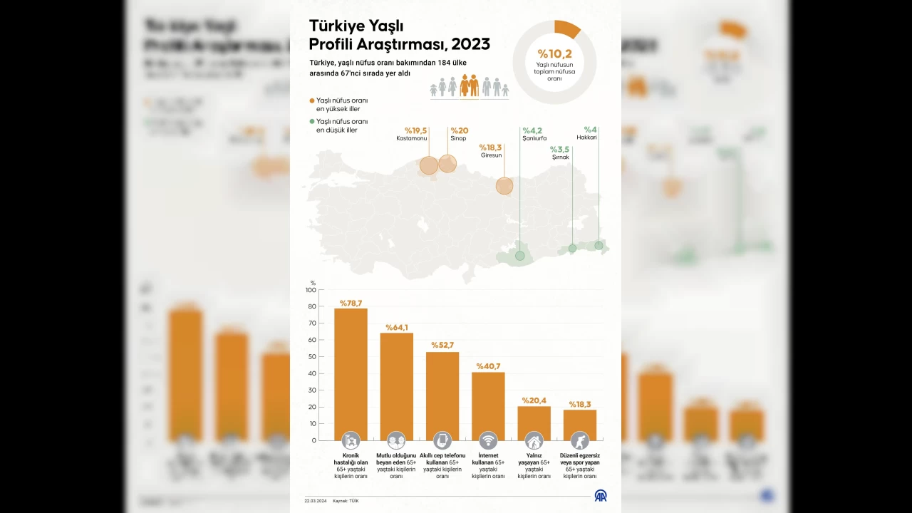 Aile ve Sosyal Hizmetler Bakanlığı ile Türkiye İstatistik Kurumu (TÜİK) tarafından gerçekleştirilen "Türkiye Yaşlı Profili Araştırması 2023" kamuoyuyla paylaşıldı.