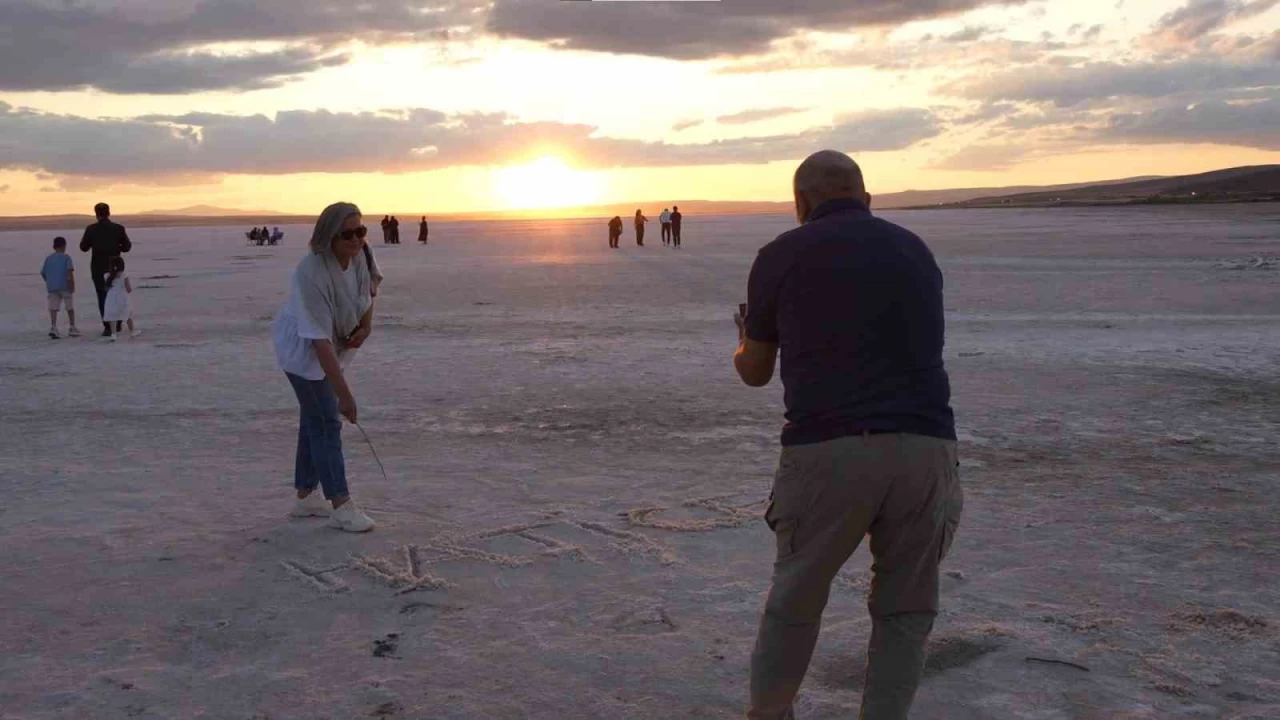 Türkiye'nin etkileyici doğal zenginliklerinden biri olan Tuz Gölü, gün batımıyla mest ediyor. Beyaz tuz örtüsüyle bütünleşen kızıl ve turuncu tonlardaki gökyüzü, yerli ve yabancı ziyaretçilere görsel bir şölen sunuyor. Akşam saatlerinde göl kenarına gelenler, doğayla iç içe huzur dolu anlar yaşarken, manzaraya karşı hayranlıklarını gizleyemiyor.