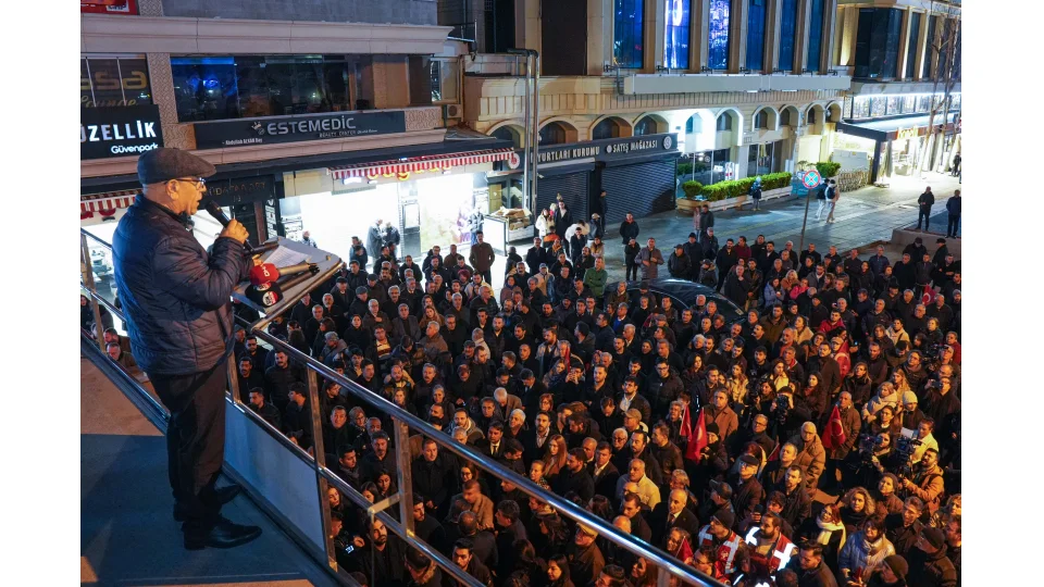 Ankara Büyükşehir Belediye Başkanı Mansur Yavaş, burada yaptığı konuşmada, tutuklama kararı nedeniyle hukuksuzlukla karşı karşıya olduklarını söyledi.