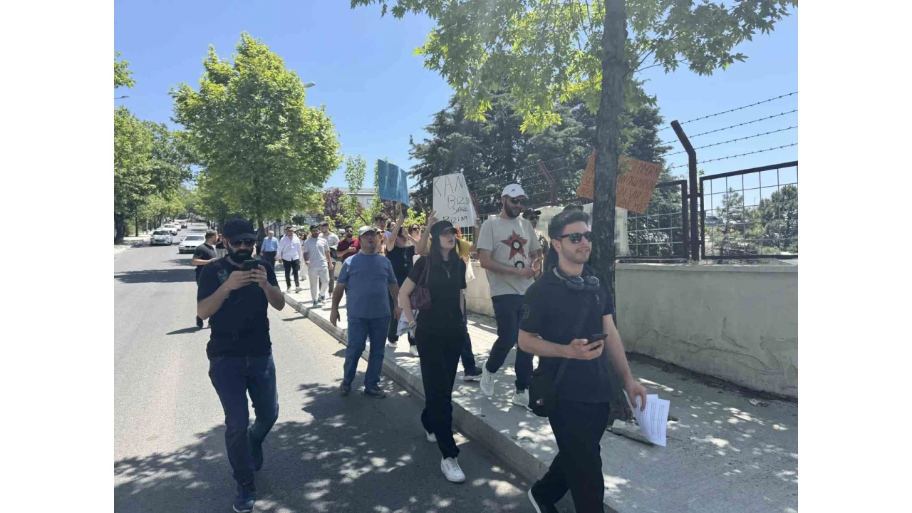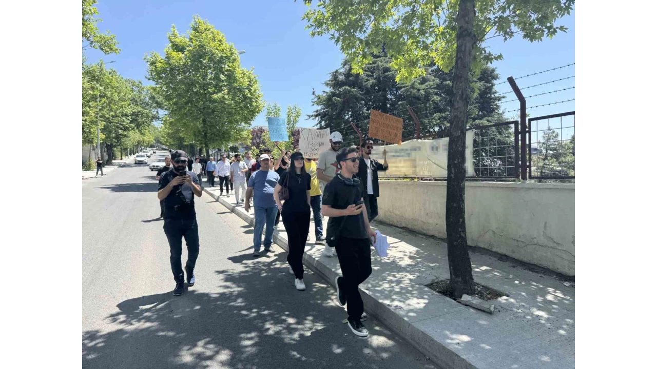 Üniversitenin kampüsünde toplanan öğrenciler, çeşitli pankartlar taşıyarak ve sloganlar atarak rektörlük binası önüne kadar yürüdü.