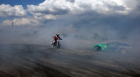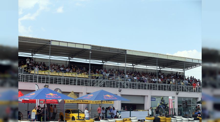 Sıcak havaya rağmen vatandaşların ilgi gösterdiği etkinlikte, sporcular her parkurun ardından araçların yanan lastiklerini değiştirdi.