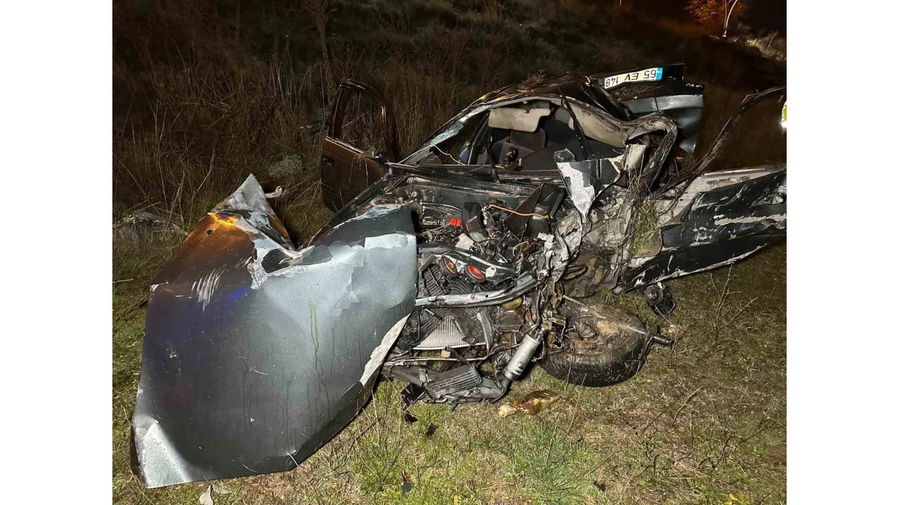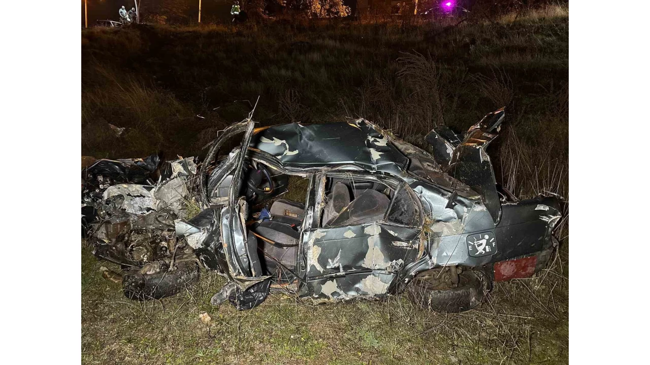 Uşak'ta otomobilin refüje çarpıp yan yola savrularak şarampole devrilmesi sonucu 2 kişi hayatını kaybetti, 1 kişi yaralandı
