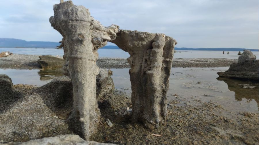 Dünyanın en büyük sodalı gölü olan Van Gölü'nde küresel iklim değişikliğinin etkisiyle büyük ölçüde su kaybı yaşarken, suyun dibindeki doğa harikası mikrobiyalitler de karaya çıktı