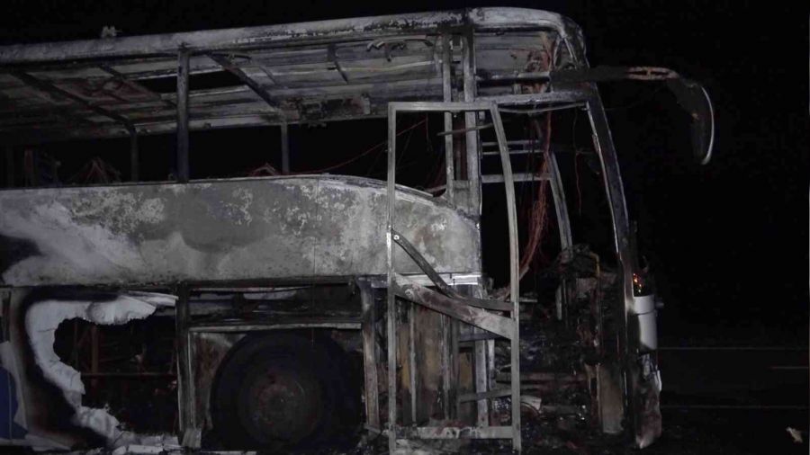 Yangını fark eden şoför, otobüsü yol kenarında durdurarak içerisinde bulunan 25 yolcuyu tahliye etti. Rüzgarın da etkisiyle kısa sürede büyüyen alevler otobüsün tamamını sardı. Alevler gecenin karanlığını aydınlattı.