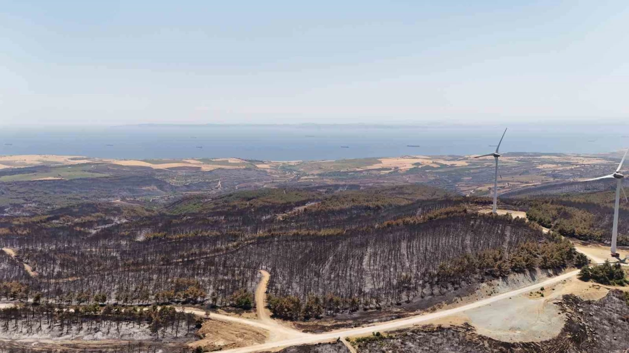 Tekirdağ'ın Şarköy ilçesinde yaklaşık iki gün süren orman yangını kontrol altına alındı, yanan alanlar havadan görüntülendi