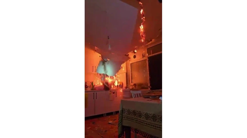 Bursa'nın Osmangazi ilçesinde çıkan yangında, çöken tavanı son anda fark eden itfaiye ekipleri, faciadan döndü. O anlar kameraya anbean yansıdı. Görüntüler zamanla yarışan ve ölümü göze alan itfaiyecilerin tedbirli davranmasının önemini bir kez daha gözler önüne serdi