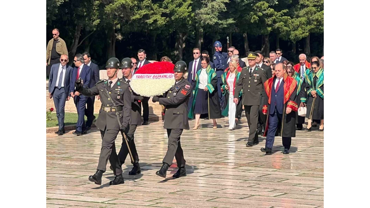 Yargıtay Başkanı Ömer Kerkez ile Yargıtay üyeleri, Aslanlı Yol'dan yürüyerek Büyük Önder Gazi Mustafa Kemal Atatürk'ün mozolesine geldi. Başkan Kerkez'in mozoleye çelenk bırakmasının ardından saygı duruşunda bulunuldu.