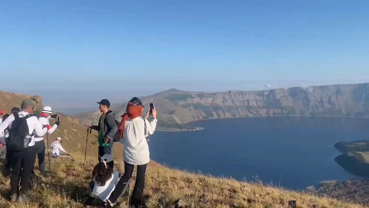 Katılımcılardan Muazzez Piral, "Buraya gelmeden önce bu kadar güzel bir manzara ile karşılaşacağımızı bilmiyorduk. Nemrut Krater Gölü'nü şu an kuş bakışı görüyoruz. Dünyanın ikinci ve Türkiye'nin ise en büyük krater gölü olan Nemrut Krater Gölü, çok sayıda ödül almış bir yerdir" diye konuştu.