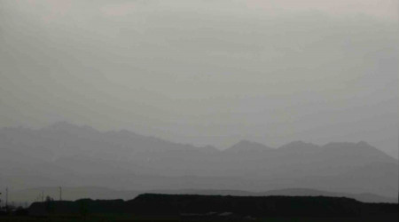 Hakkari'nin Yüksekova ilçesi gündüz vakti karanlığa bürünürken, araçlar far yakarak ilerleyebildi, dağlar toz bulutu içinde kayboldu