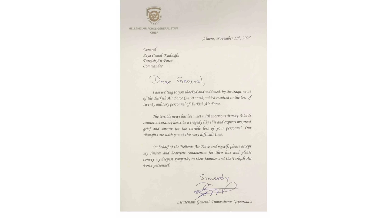 Hesaptan, daha sonra "Yunanistan Hava Kuvvetleri Komutanı'ndan Türk mevkidaşına taziye mektubu" başlığıyla Gürcistan'daki askeri kargo uçağı kazası için taziye mesajı yayınladı.