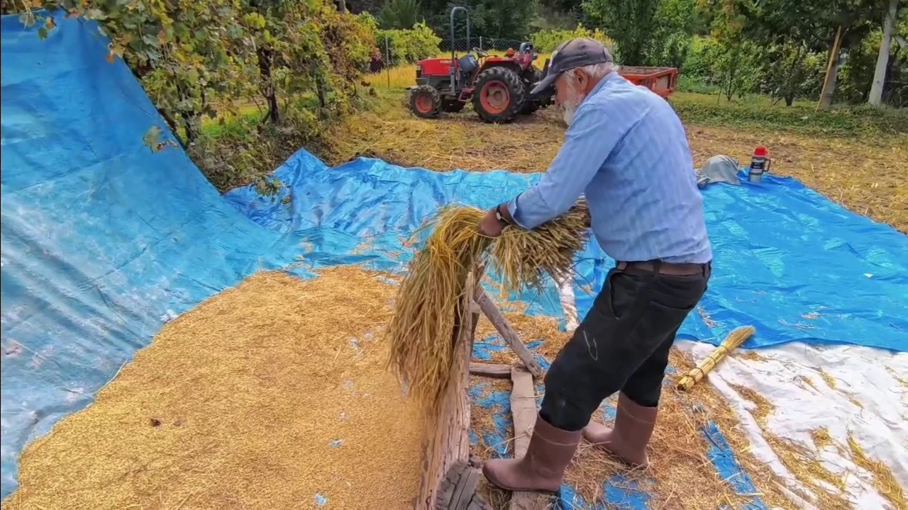 Artvin ile Erzurum sınırında yer alan Yusufeli ilçesinde pirinç hasadı tüm hızıyla devam ediyor