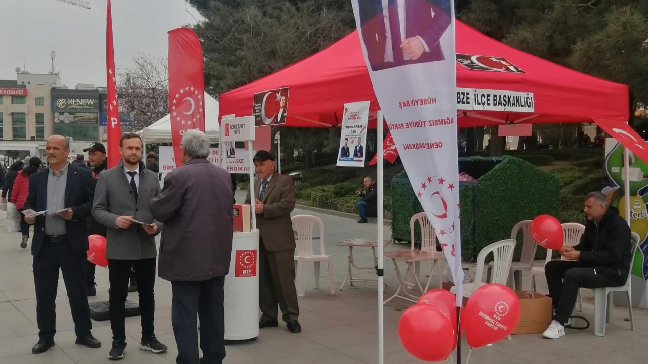 Bağımsız Türkiye Partisi (BTP) Gebze Belediye Başkan Adayı Fatih Öztürk stant çalışmasına katılarak vatandaşlara projelerinden bahsetti
