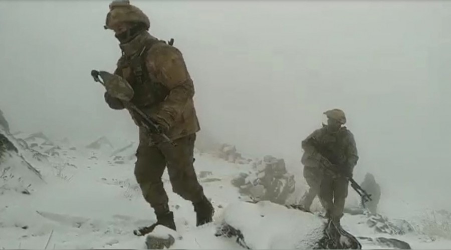 Terör örgütü PKK'ya karşı Yıldırım-1 Cudi operasyonu kapsamında teröristlerden arındırılan Şırnak Cudi Dağı'nda Mehmetçik çetin kış şartlarına rağmen vatan nöbetini sürdürüyor. Şırnak Valisi Ali Hamza Pehlivan, Cudi Dağında kurulan üs bölgesinde çetin kış şartlarında görev yapan Mehmetçiğin görüntülerini Sarıkamış türküsüyle paylaştı