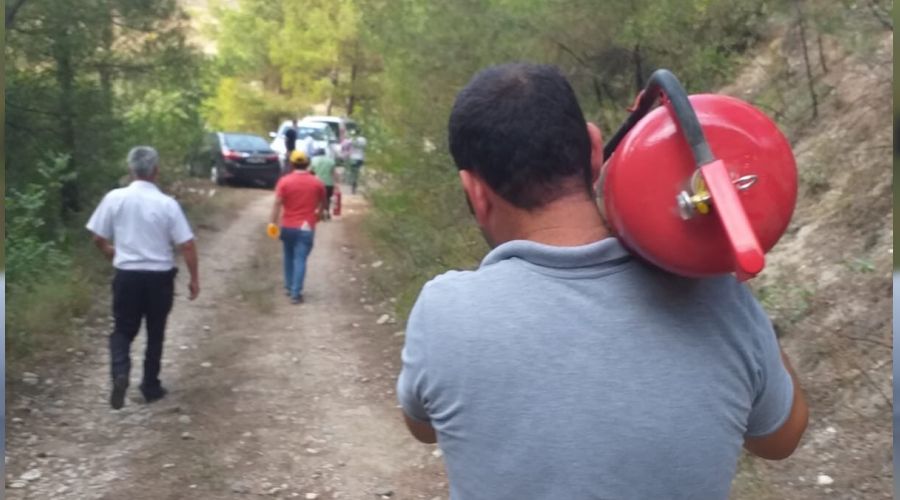 Orman yangınına ilk müdahaleyi tüplerle yaptılar