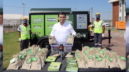 "Belediyemiz, bugün itibariyle çiftçilerimizin de önemli dertlerinden biri olan ve çevre kirliliğini çok ciddi manada tehdit eden sera atıklarını toprak düzenleyici kompozit haline dönüştürüyor. Sera atıklarından elde edilen gübreyi de yine çiftçilerimize ücretsiz olarak hediye ediyoruz. Kompost makinesi günde tam 5 ton sera atığını işliyor. Bu işlemi de 24 saat içerisinde fermantasyonla birlikte yaklaşık 1,5 ton gübreye dönüştürüyor."