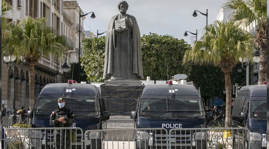 Polis, alınan yoğun güvenlik önlemlerine ve Habib Burgiba Caddesi'ne çıkan yolların demir bariyerlerle kapatılmasına rağmen alanda toplanan göstericileri dağıtmak için göz yaşartıcı gaz bombası kullandı.