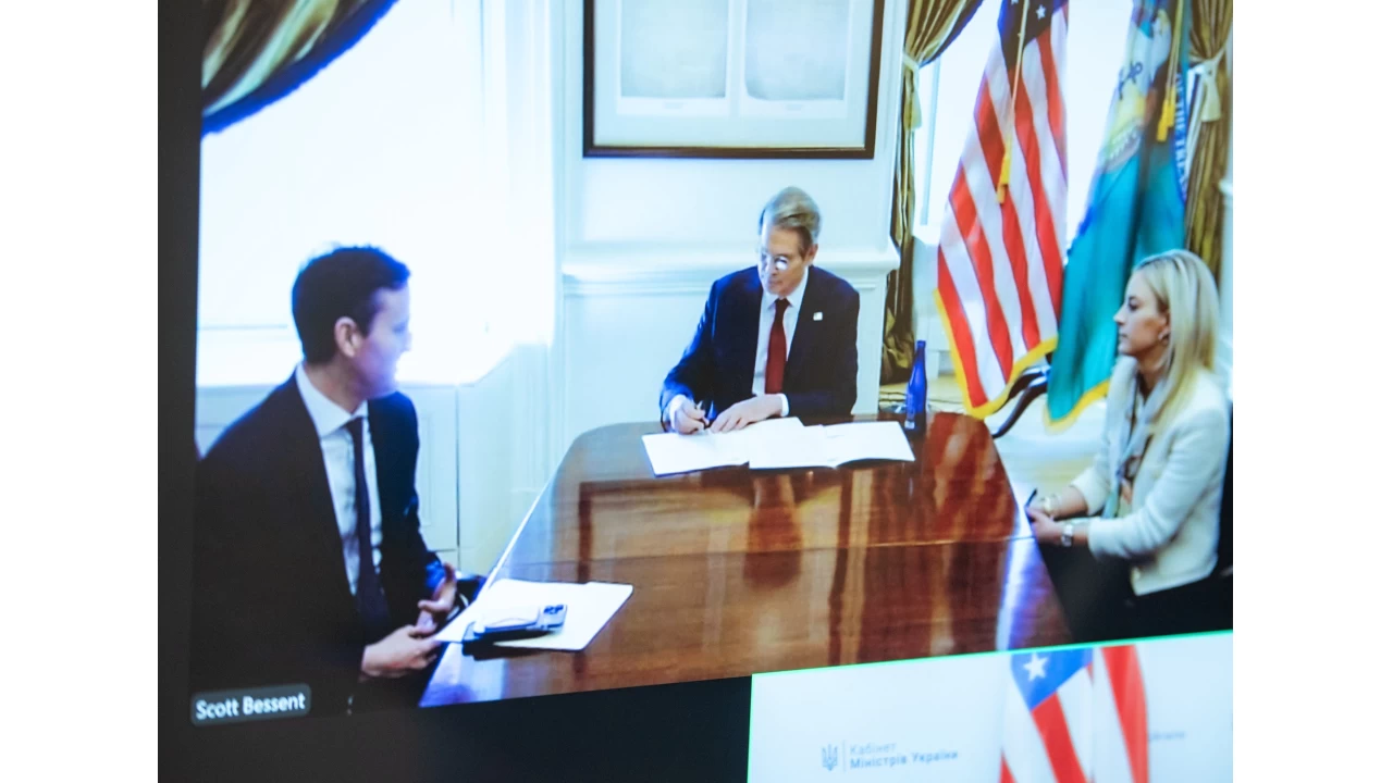 Sviridenko'nun paylaştığı fotoğraflarda, söz konusu mutabakat zaptının, çevrim içi olarak Sviridenko ve ABD Hazine Bakanı Scott Bessent tarafından imzalandığı görüldü.